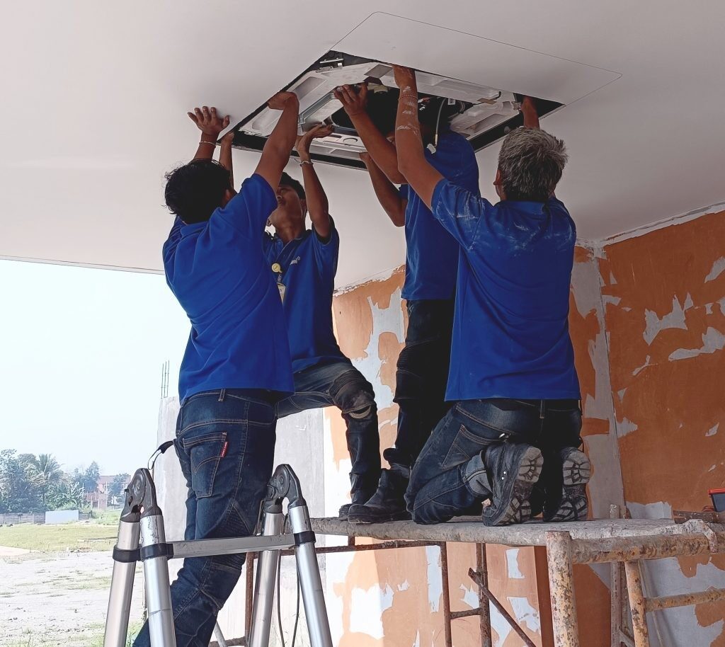 Pembersihan unit indoor dan outdoor AC, membersihkan saluran pipa drain dan filter udara serta memeriksa suhu AC.